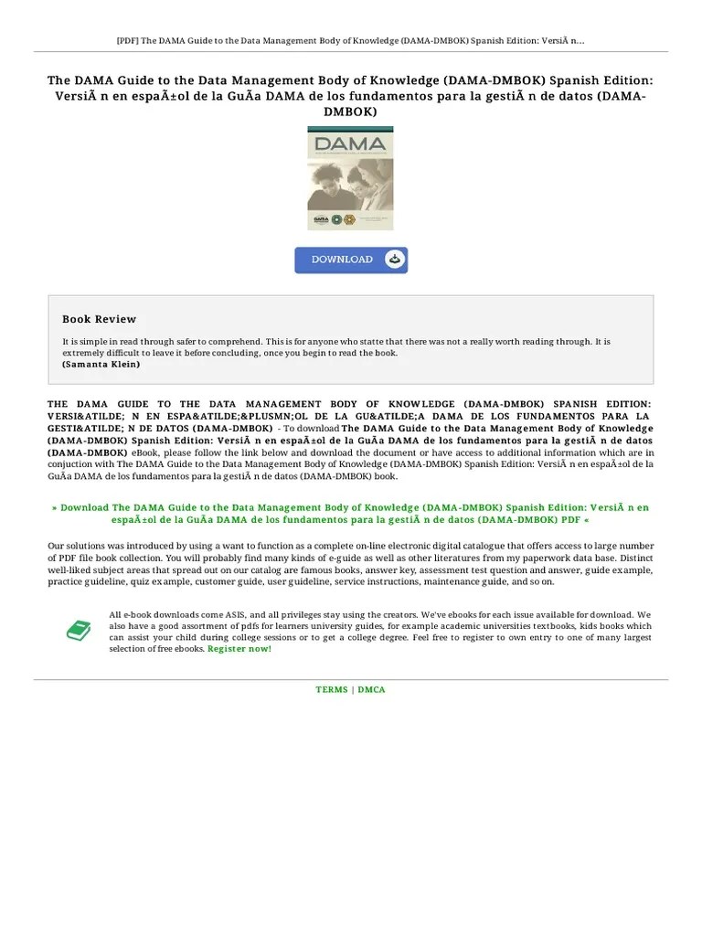Dama data management knowledge system guide (original book 2nd edition) >> chinese translation >> italian translation >> japanese translation >> spanish translation. A fra e ork hite paper as ritte a d floated to the data a age e t o u ity for o e t a d i put, and became the basis for the first publication. Dama data management knowledge system guide (original book 2nd edition) >> chinese translation >> italian translation >> japanese translation >> spanish translation. Browse list of recommended books. Dama emea conference december 1. Dama data management knowledge system guide (original book 2nd edition) >> chinese translation >> italian translation >> japanese translation >> spanish translation.